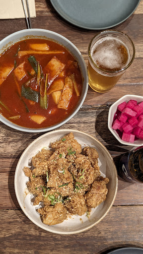 Β Β Β Read moreDelicious authentic Korean fried chicken. Simple. Go eat there! We don't usually like boneless because it's just drier, but OMG these are a must! Going to miss it when we get back to the states. And let's not forget about the tteokboki-- 6/10 spicy level with the perfect chew and ample sauce! Thank you~ Would've loved a hard boiled egg or the option of ramen but guess it's not the style here. Please add it to the menu? :) Anyway we cleared the plates in less than 30 min hahah with the beers Will def be back and special thanks to the crew who helped us out while we were stranded without a taxi in sight....