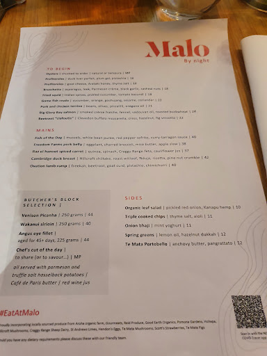 Read moreMy husband booked this restaurant for my birthday after a friend of his recommended it. I started with a Cocktail. The Pornstar Martini sounded intriguing so I thought why not! It was delicious and refreshing. I searched for this cocktail and found out that it is served with a small iced glass of Proscecco Wine beside it. It was served to me without the wine so I wondered if it was added in; maybe someone could tell me? No matter, it was beautiful and oh so delicious just the same! I will be making it at home! We ordered a bottle of McLaren Vale's 'molly dooker' Cabernet Savignon which paired deliciously well with my Wagu beef. My compliments to the chef! The other thing I would like to add was the butter that came with the complimentary bread. I fell in love with this butter! I was sure that there was truffle in it so when I asked the waitress if there was truffle, she said no; the butter had been smoked. Well, suffice to say, that Umani taste definitely came through to my tastebuds! We have a smoker at home so we will be doing the same! Oh, I almost forgot; thankyou to everyone at Malo for an incredible and unforgettable night for my birthday. The thought of a card left at our table when we arrived was so lovely and touching; thankyou all! And we will definitely be back, probably for my husband's birthday...