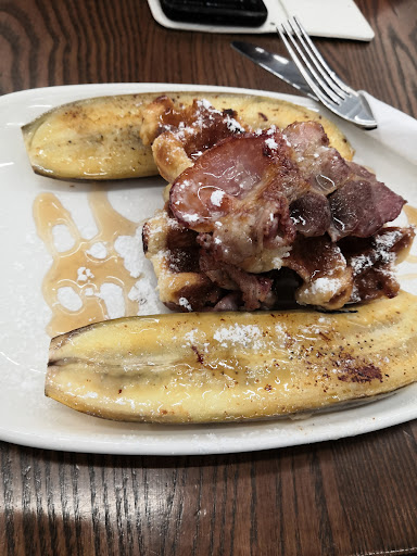 Read moreThe food is meh, portions are super small, paid about $16 for waffles, and was given one waffle cut in half. Bananas were also in the dish, but the peel was still on?? Scanty amounts of maple syrup, nothing special about the bananas. And two slices of bacon. Would not recommend for a person with big appetite. Also my mum got a bagle, very plain, bland, and mundane. Sure it is healthy but there is absolutely nothing interesting about it, some salad leaves, a few slices of avocado and bacon. Also the service here was a bit shocking, there was a lady who brought us our bagel, and barely spoke a word. The service was pretty slow as well, and the workers didn't seem like they want to be here. Overall, this place seems nice with all of its decor, but the food is pretty average, OK tasting, but...