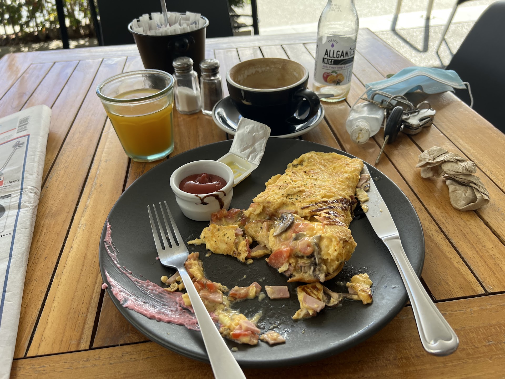 Ā Ā Ā Read moreI came in for brunch with my friends on a Saturday morning. The place was quite busy but the line at the cashier was short. I have been to other Robert Harris before so I know I will always get good food. My friend ordered peach iced tea and really enjoyed it. She was almost finished with her drink when she noticed there was a big black ant in her drink. She returned the drink to the staff and the staff just said 'eww' and threw the drink away. When my friend went back to our table we asked if she was offered to get her drink replaced. She said nothing of the sort was said. We must have talked about it too much and too loudly that eventually another staff approached us and asked my friend about her drink. The staff then asked my friend if she wanted a new drink or a refund so my friend said a refund. The staff refunded her and apologised. We told the staff we appreciate her gesture. It was a good save. Appreciate that staff for her very good approach. I loved my bacon and egg...