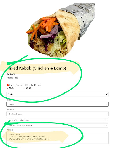 The first time I used this method, they added all the salads despite my clear request to leave some out. The second time, I ordered a large combo but only received a kebab without sides. I had to return 2-3 times to get it corrected, and the staff member even questioned if we knew what we were doing. They also added onions, even though I did not request them, and the screenshot showed exactly what I wanted in my kebab. They ask questions about size, sauces, salads and drink when the screenshot already provides what they need to know. I'm unsure if they are just lazy to read the full order because it seems like a 1 second look at the screen and a nod. They confuse the person I am sending in with their questions.