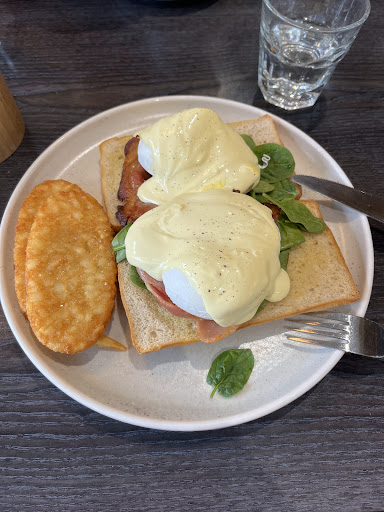Read moreSo where do I start⊠I had to try their egg bene because I never did. And I think I came in with high standards. Sadly, my partner told me itâs the fast food of the coffees. And he were right. Im glad I asked the hash browns because the bread was not hitting, the hollandaise sauce was way too creamy, I had to add salt and peper which I never do usually. And the eggs.. what to say? One wasnât poached but you know it can happen. But we found a egg shell at the end and it never put you on a good mood when you bite into something hard. Obviously I took and iced americano and the regular size is big so thatâs good and the coffee is alright.