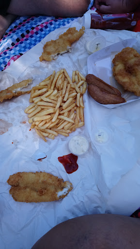 After settling us on the beach, he returned with mouth-watering plates of battered fresh snapper ($8.25 per plate) and a scoop of chips ($3.30). The fish was perfectly fried â crisp, golden, and not at all greasy â and served with a wedge of lemon for garnish. The chips were equally delicious, nicely salted and cooked just right. Captain Kerrâs also offers ice cream, though we werenât in the mood for it that day. Conveniently, there is free parking available just across from Captain Kerrâs.