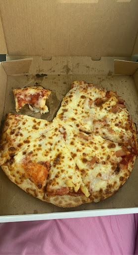 I had a filling lunch with friends after visiting the hot rod festival and it was wonderful having ordered the Hawaiian which was absolutely perfect, not overcooked, not cut poorly and great tastes met to expectations. I also got the XL Beef and Onion for a surprising $9 so I would say it is fairly cheep and I was satisfied with the pizza, some things I may want to point out though would be the cutting quality on the Beef and Onion, the Hawaiian was cut perfectly but for some reason the slices on the Beef and Onion were a bit oversized almost like a New Yorker size, another thing is that the cheese were not as evenly spread all over the pizza as I noticed some uncovered onions on two different slices but the other onions were covered in cheese. Lastly the Franks Red Hot Wings were so good with an actually fair portion of meat on the wings and still having âspicy hotâ sauce on the chicken unlike Red Beach Dominos. I would say I had a pretty good experience and that the food is fairly priced as I payed $25.99 for L Hawaiian +cheese, XL Beef and Onion, and Franks Red Hot...