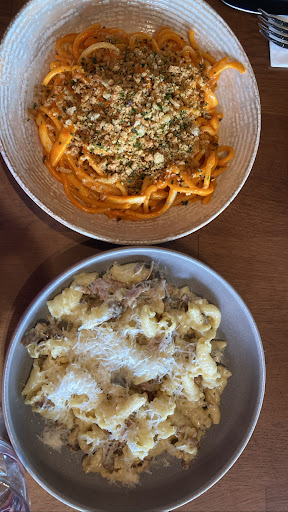 Read morepalato is always a hit!! we’ve been to their previous cbd location a couple of times last year and it was love at first bite. so when we found out that they reopened in browns bay we had to visit asap. we tried the bucatini (with red pepper sauce) and campanelle (non-traditional carbonara). and they were both so DELICIOUS. the bucatini was so saucy (i love red pepper sauce YUM) and the squid was so tender. the campanelle has a special place in my heart as it reminded me of the carbonara i grew up eating in malaysia hahaha, and even if you didn’t have any childhood attachments this was still an excellent dish. i’m a huge mushroom + cream fan, and the pasta shape is like a spoon to hold the sauce, mushroom and pancetta in one yummy bite. the portions were so generous we had to take the rest home, can’t wait to have it for dinner 😈😈😈 they also have entrees and desserts now! we tried their baby cos salad (thank you chef!!🫶🏻) and ricotta cheesecake. if all salads tasted like this i would eat more salads, the dressing is so addicting and the focaccia crisps are soooo crunchy. after such a hearty meal, the dessert was a great way to end it. the tangy passionfruit sauce cuts through the richness of the cheesecake so it was very refreshing 😍. we had such an amazing lunch. the service was great. the owners are always so lovely 🥹🥹🥹 and it shows in their food as well!! can’t wait to come back 🤩🤩🤩 hopefully the corn pasta and chicken pot pie pasta makes a...