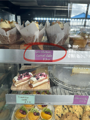 The lady who rudely addressed this with us stated that the food in the cabinet was actually gluten free but they must label it low gluten because it may be ‘contaminated’ by non gluten free food in the same cabinet. Had it been labelled appropriately, we would’ve purchased it. We were not prepared to take the risk.