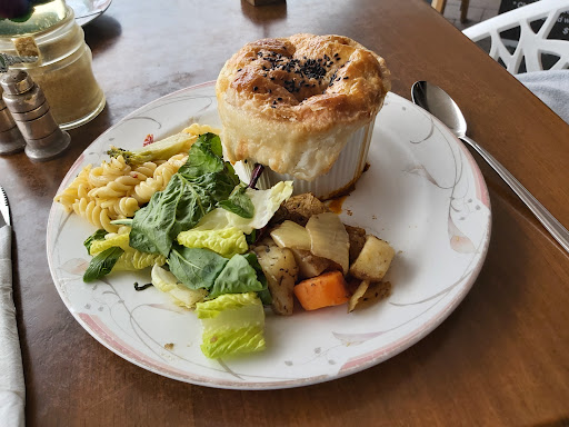 Read moreNice table out on the street watching the comings and goings in howick village, inside looked nice with plenty to look at on the walls, had a good vibe. Chose from the cabinet as the range was good with a specialty in individual bakes and pot pies, chose the Moroccan lamb pot pie and a bean baked cheesecake. I asked if the pot pie came with salad and they said it did, was expecting something simple but they gave me a good spoonful of the 3 salads they had, a lemon macaroni which was absolutely delicious and a highlight, and cos lettuce with light vinaigrette and roast vege salad, both good, the pot pie flavor was rich and delicious plenty of filling and not too much sauce, the perfect ratio. The cheesecake was light and not too sweet and blended perfectly with the berry compote, best cheesecake I've had in quite a while. Coffee was above average. Very good price too. Very highly...
