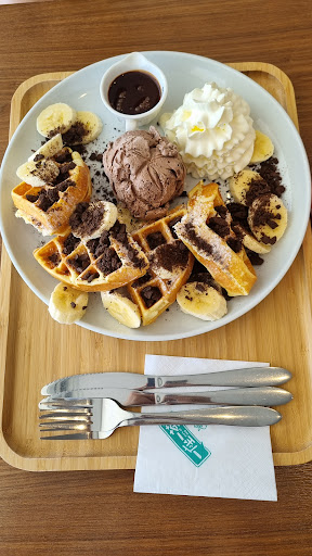 Read moreReal cute space to chill out. There's boardgames available for you to hang out with friends. I came here for their boba and bubble waffles and let me tell you their bubble waffles were on point. They have ice cream as their topping and so what I love about their bubble waffles is that they're a bit crunchier and so when the ice cream melts when you get to the last bits, it stays in shape and not mushy - I really really appreciate that 🤩 Been here twice and got the mango and oreo bubble waffle and both times we got some crunchy yummy delicious bubble waffle and didn't go soggy 👌 surely this was intentional...