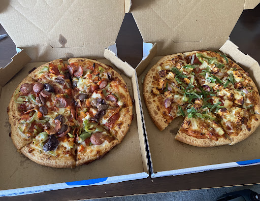 Read moreFirst time visiting this store. First impression very clean/ tidy store inside and outside visually, excellent customer service (prompt greeting upon arrival with a lovely smile) and very well presented staff. 3 stars for food only reason was because the thin and crispy crust was too doughy towards the centre of the pizza to 3/4 of the way eating it the end was crispy for all 3 we ordered, topping wasn't excessive either. The only 2 things I could pin point this too is either insufficient heat or improper dough handling eg incorrect dough weight before putting the dough through the dough sheeter machine. Speaking from experience having worked and managed several dominos pizza stores 25+yrs ago, those are the only 2 reasons I could think of that went wrong with the thin and crispy crust otherwise overall beautiful and clean store with amazing staff who present well. Keep up the great work ....