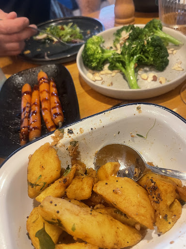 We ended up ordering 2 sides each because we were otherwise left with only a leafy salad to order. No, us vegetarians also like to feel full and have some flavours. We literally ordered potatoes and two veg, something I could have made at home.