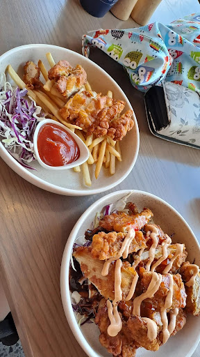 Meals came out and to be honest could of been almost identical. The salad on the kids meal was just shredded cabbage; not really a salad persay. Chicken was cut with the grain so wasnt easy for my little one to eat fully. And the slaw on the buttermilk chicken was the same just shredded cabbage. A very sweet dish due to the combo of three sauces. Probably doesn't need the sweet Chilli sauce on it when there is a heavy soy sugar base sauce on the bottom covering the cabbage. Feel the slaw could of had more potential to it.