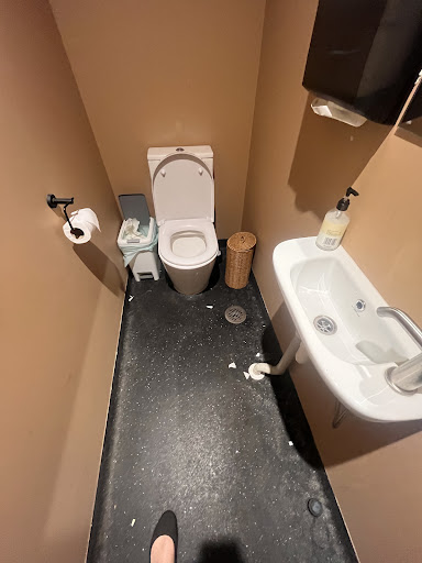 As for the bathroom….. staff should atleast clean it/ customers should help keep it clean by throwing tissue in the BIN/ toilet paper IN the toilet… both toilets are filthy, sticky floors