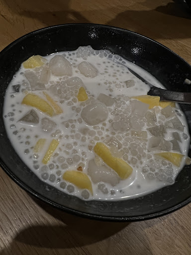 Sago with coconut, mango, ice cream Dish was served at room temp, this is supposed to be a cold dessert dish but it was not served this way. ice cream portion was slightly smaller than a size of a pingpong ball - it didn't give me enough to enjoy with the sago drenched in coconut cream. Mango pieces, well they weren't fresh, I know it's hard to get fresh ones, but they had almost no taste. lastly the sago was just too soft and coconut cream had nothing special about it. -overall balance of the dish was off - due to the lack of attention paid to providing a quality dish.