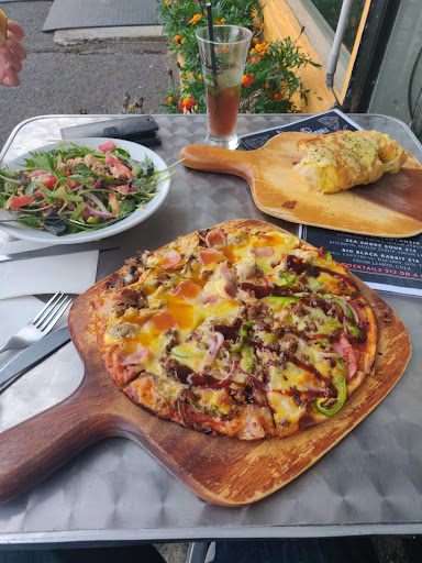 We had a terrible experience here which surprised us because we specifically went for lunch at this place due to the reviews. First we couldn’t find staff when we walked in so had to wait to find out if we could choose our own seats etc. It wasn’t busy so that’s understandable but not ideal. Then the bathroom was absolutely gross, there had been a poop situation and there was a very messy bowl and seat. Maybe the staff hadn’t been to the bathroom, so I just left without using the facilities. Again, can be forgiven. The restaurant was cold and we were both sorry that we hadn’t brought in our jackets to wear. The glasses and silverware on the table were not very clean which for me is a bit off putting. We just didn’t use them and decided to order pizza as the pizza was well reviewed on here. We ordered according to the menu and when my chicken pizza came out it had bacon on it. This was not mentioned on the menu and I do not eat pork so I took it up to the counter and had to wait for staff to come and speak to me again. At this point I was over it to be fair. I at first asked to just refund the pizza and wanted to leave but the staff said that they would cook me up a new one quickly and I didn’t want to be a jerk so I accepted. When the pizza came out it was very fast and I was suspicious that they had just taken off the bacon and reheated it. The staff member picked up on it and brought out the first pizza to show me that it had been wrapped in plastic wrap and labelled to be FROZEN AND SERVED AGAIN!!!! That was it for me. I took one bite of the second pizza so that they couldn’t serve it again and we left. You cannot serve food to a table, have people touch it and walk around with it, freeze it and cook it again to give to a different customer. I worked in hospo for over ten years. Both of my brothers are chefs. It should never happen. You need to be very clear when you have pork in a dish and once that food has been handled and returned that’s trash. You need to cop the loss because that’s on you. Any good food establishment knows to make clear when nuts, pork, etc are in a...