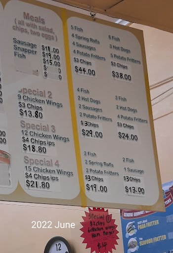 Read moreThey have the best fish and chips around town however, the amount of chips they give you for 1 scoop is almost a halve scoop. I spent 10 dollars on chips alone and when I opened them up it looks like 5 dollars..literally. I'd rather buy chips from ivans just 1 minute up the road where they give you more chips for your buck!