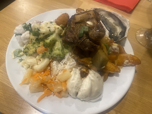 Read moreThe food here is poor and such a disappointing experience. The seafood which should have been the highlight for me was disappointing: The oysters were not fresh, the seafood and shellfish were overcooked.The shrimp cocktail sauce had a terrible aftetaste, the seafood salad tasteless and the raw fish was disappointing. The cheese board was an option of a dry brie, a hunk of cheddar & a crumbly blue cheese. The meat dishes were over cooked and were either over powered by spices or bland. The selection of meat to be custom cooked to taste was a good idea, the rub used on the meat was not, as it overpowered the meat and was the same rub on all the different types of meat on offer. Why?! The Ham and other roasted meat was so dry! The mac & cheese was rancid, the german potato salad was so disappointing as were the other vegetable dishes. The veges in garlic butter overcooked and veges in the creamy white sauce was bland. The desserts were so tiny, the ambrosia was a dry whip concoction of marshmallow and dry spice that left a bad taste in the mouth and the chia seeds in the chia mango pudding needed more soaking. The best dish in the whole menu was the Pumpkin & Coconut Gratin & the crab legs, if only they had tools to break the legs with! The pavlova & brandy snaps were ok & the relish on the cheeseboard was also ok. It wasn't very busy when we were there on aTuesday night, but there was a shortage of spoons and several stations had run out of cutlery. All in all the food was so disappointing given that we paid $64 an adult to eat re-warmed leftovers! For Valentines to stay in business, I would suggest they overhaul their menu, hire an actual chef with a palate, because there are so many better...