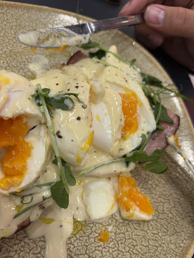 I recently had the pleasure of dining at Aroha Café at Auckland Airport, and it was a truly delightful experience. I ordered the Eggs Benedict on a bagel, paired with a Mochaccino, and both were exceptional. The dish was not only delicious but also beautifully presented, showcasing attention to detail and a passion for quality.