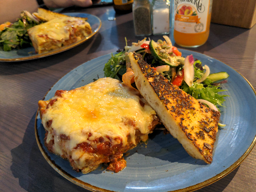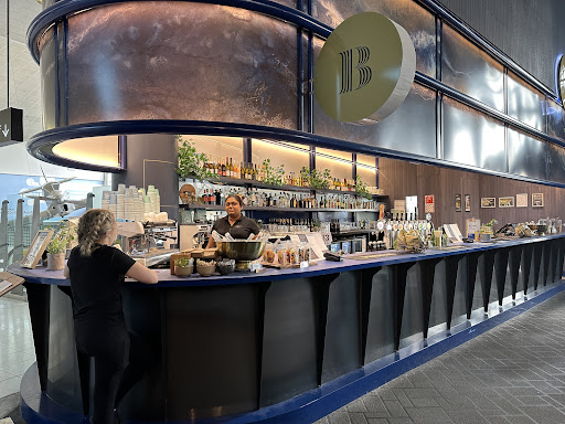 Read moreI could have sworn there used to be a different restaurant right here, but maybe there was and I just haven't been paying attention for a few years. Either way, whatever bar/restaurant is here (now being Blue Marble Lane) is the one we'd go to when we're sending our friends and family off by sharing one last beer or bite. Beer selection is the standard ones like Macs or something similar. Some of the seating is directly in the sun along the windows, too much at certain times of the day, but there's plenty of other tables all scattered about and that's a bit how it feels, especially if you're bringing in some carry on bags and trying not to get them in the way of others. The couple of trees with fairy lights were a nice touch to it, but I can't really describe what the bar theme is supposed to be as it kind of feels in contrast to the trees with basic counters and uncomfy stools. Only snack we got were the loaded potato wedges, and those were definitely worth having with the bacon, cheese, and zing...