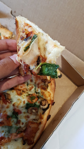 And that's why i stopped ordering dominos last time, and why I'll stop ordering them again now. The pizza is rubbish, rushed and simply not worth it with much better non-chain options nearby. The owner of this place needs to take a serious look at how it's actually running, and focus on quality as well as speed. Yuck.