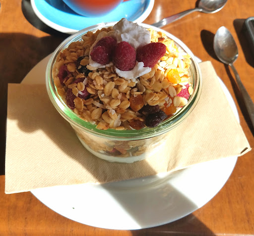 Read moreNice seating along the windows, nice and warm on a winter morning. Huge selection of cabinet food and cakes, looks amazing, and variety to suit many diets! Coffee roast never tastes the greatest served black, a bit earthy, could benefit from a lighter roast. Perhaps the team could offer a couple of different roasts on the menu "Organic" and "House blend" for example, which is common in other coffee shops. I'm a house blend kinda guy. Outdoor seating isn't the best, you feel like you're jammed into a kindergarten some days. Perhaps they could build a new patio area outside the main door with a bit of wind shelter. Will keep coming back here...