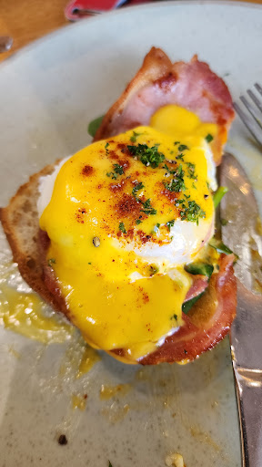 After an amazing night out with friends, the perfect start to a day is with a delicious breakfast. Well, today was a good day! As always, starting the morning with a coffee is a must, so I ordered a flat white and an americano with cream. This came quickly and go us off to a good start! I then ordered eggs benedict with bacon. The eggs were cooked perfectly, and the ciabata bread was fresh, soft and perfectly toasted. The stand out of the breakfast was the bacon - smokey and crisp, I could have eaten a whole plate of the bacon alone! All 5 of us who were eating were very happy with the breakfast, and it got us off to a great start to an amazing day. Another note is that we had a toddler with us, and the cafe catered to his presence with toys and a high chair...and lets not forget the 'fluffy' which eventuated with chocolate all over his face! Super cute. Definately good value and a...