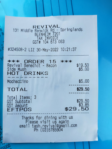 It's difficult to believe Revival manages ratings higher than 2/5. While the store is clean with a modern atmosphere, it misses on every other category which may qualify it as even a mediocre cafe. I found it shocking that the staff at the counter didn't bother with the usual pleasantries which Kiwis are known for. There was nothing warm or welcoming making it clear the relationship was strictly transactional. The coffee came quickly and my cappuccino tasted as if they'd used drip coffee from a midnight truck stop and poured bubbly steamed milk poured in. Based on the flavor I'm fairly certain they're not cleaning their machine between uses and the barista needs to be trained properly. The food while not unpleasant in look, was dismal. The eggs of the bene were hard poached so instead of deliciously runny yolk, it was a dark congealed glob packed inside the hard whites. The hollandaise sauce was sour because they'd over done the lemon. It was also thick like whipped cream or possibly thickened cream. This seems odd given the actual sauce is made with eggs, butter, and a drop of lemon to even out the richness. I could only manage two sips of coffee which I regretted because the petrude flavor stuck in my mouth until it was washed away with an oddly cream like sour lemon sauce. I wish I could say this meal was mediocre but instead it was just bad. I strongly recommend pretty much any place else in Blenheim, maybe even the gas station over...