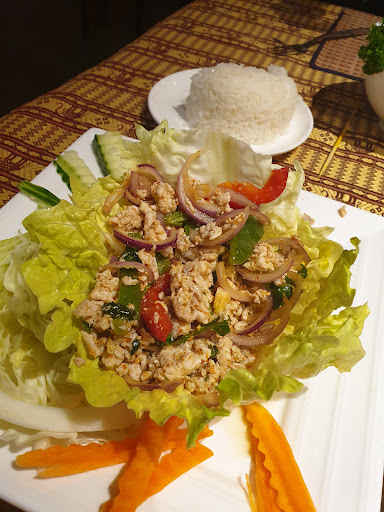 Siam Kitchen just reminds me of Thailand, from the quiet tones of Thai spoken between the staff to the pungency of the green curry to the salty piquancy of the larb gai. The entrees are authentic and tasty, and come quickly along with your drinks. As much as we can always stuff ourselves with money bags and prawn fingers we usually opt for the mixed entrees for a piece of everything. The larb gai is one of the most authentic Thai dishes I've had outside Thailand, salty and hot from fish sauce and chilli, and crunchy from the ground roast rice which normally sets it aside from domestic imposters. Try the larb, try the tom kha, give the pad thai a miss and venture the more authentic, lesser known dishes. You wont be...
