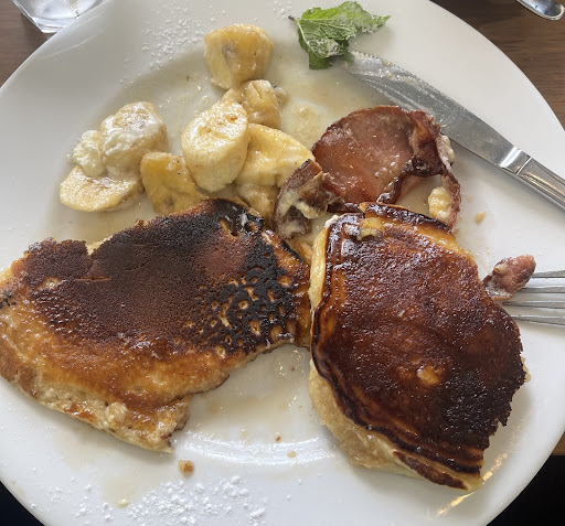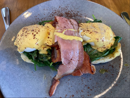 Food average but perfectly edible. Would have given a much higher rating if the older woman at the front counter with dark hair was not so cold and rude), When we came in she started at us for over a minute with a stormy face - no greeting, nothing. I tried to make eye contact to smile but she would looked away. We found seats and my husband went to order, she apparently took his order without smiling or any pleasantries. possibly worst service had in a while. Always great when you spend money to be insulted! Positively though the young girl front of house was very friendly and helpful. Coffees were good. What a shame to have such a liability at the front counter. Would never...