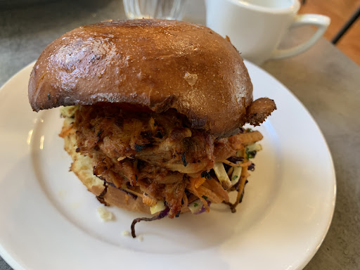 Read moreThe interior of this cafe is really nice with lots of seating. Parking is a premium though and if you do drive there make sure you give your reg number to the staff to prevent your car being towed away. We ordered the chorizo potato smash and the pulled pork brioche bun. The chorizo smash was not really a smash but more cubed roast potatoes. These were only semi warm and took away from the dish. I said yes to the pulled pork brioche being heated but when I received it, only the outside filling was lukewarm and the inside was still fridge temperature. Flavour of the sandwich was good but the reheating let it down. Coffee was good but we would probably not...