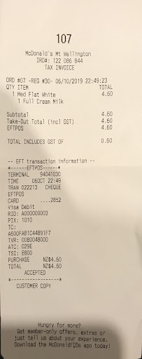 Read moreThis place is a joke. I was wanting a burger around 6am but I didn't realize they stopped cooking burgers at 5am!! Fair enough. That's fine, looked at the breakfast menu and there's a breakfast burger.. so cutting a long story short.. you can buy a burger but it will cost you $11:80. What a joke. To justify this they give you a hash brown even though there's one in the burger. The worst part is when she asked me what I would like to drink! ! Would you like water!! I told her that I could get that out of the tap for free. She then offered me soda. Hot chocolate or orange juice. Sounds better so I'll have an orange juice. . She then hands me the machine to swipe my card and it's gone up to $12:80. She said nothing to me about the juice costing $1 more. Does mcdonalds think all its customers are idiots and we all have money trees in our backyard. I dnt mind it if you tell me about the extra cost, but to increase the price and without letting the customer know is nothing more than a culture that mcdonalds nurtures. I'm one of those people that double checks things. Lucky I did.. i told the lady that I dnt want your juice and I will not be coming back to Mt wellington mcdonalds. $11:80 for a burger $12:80 for a burger and orange juice. . Go back to the U S of A and take your...