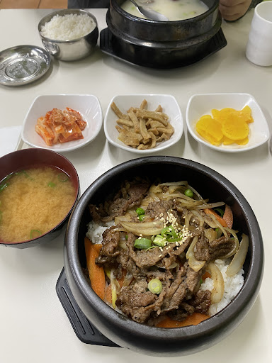 Small menu, but definitely good at what they have. We got one Pork back bone stew and a Bulgogi stew. Flavors were really hearty and authentic. Presentation was really appealing and made us even more hungry. One of very rare places that actually give what they show in the menu! Really appreciate it. Go here if you want to enjoy authentic Korean food. The Kimchi and Radish side dishes were delicious and fresh! The mains were really filling and hot, food comes in stone pots, which was a very nice experience. Every dish comes with a bowl of rice covered with a lid, empty bowls for putting bones and stuff, first time I'm seeing this much care into serving people nicely.
