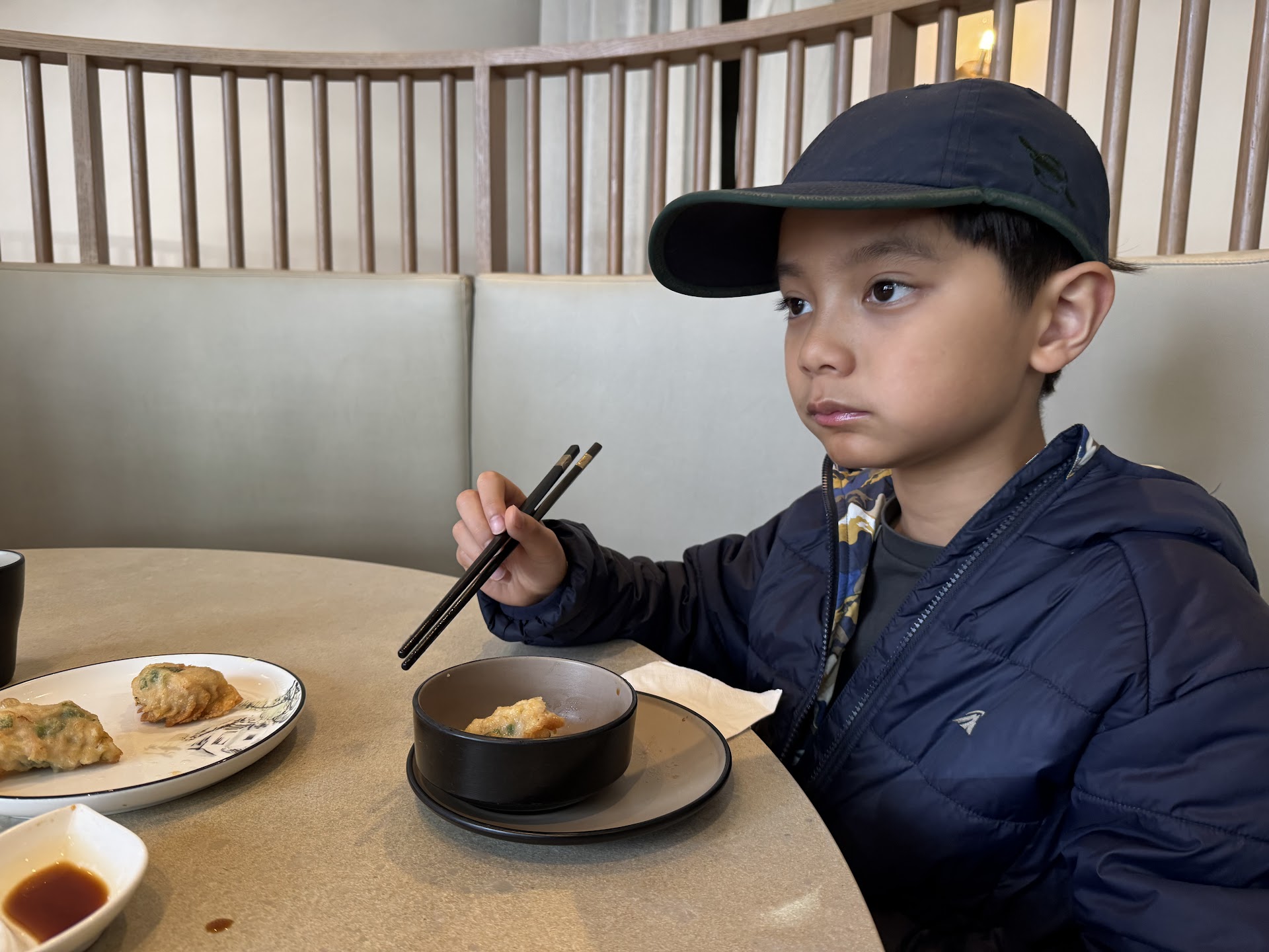 We asked them for a table and told us to wait. Like, who asks hungry guests to wait for so long? Anyway, as they were cleaning away, we had to stand for 10 minutes straight. As we were waiting, we checked the menu and I was looking for my usual meal, pork & chive dumplings and chicken dumplings. But as I scoured the menu looking for it, the closest they had to my preferences were western-knock-offed deep-fried prawn dumplings. I mean, I went to a Yum Cha in Wellington and their menu was so much better, only proving how bad it was compared to the other one.