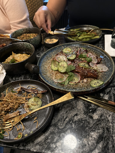 Did we go to the same restaurant as all of these other reviews? Is it just the one Tuesday that let's the place down? Honestly the overall experience was disappointing. We had already been warned prior to our visit that we should order our drinks at the bar because it would take forever to be served so we were prepared for this, but after reading the other reviews we were expecting the food to be on point. Positives: Nice decor, comfortable seating, tasty cocktails. Negatives: It took a long time to be visited by the wait staff after we were seated and they advised that we had to order everything at once as there was a long wait time for the kitchen. They were out of pork and paua dumplings but that could be put down to popularity with other diners. We ordered the fried rice cakes , 3 cheese wontons, brisket and shitake wontons, salt and pepper tofu, sticky beer and miso lamb ribs and asian greens. The fried rice cakes were not fried, they are korean rice cakes as you would get in tteokbokki boiled and then mixed into caramelised onions, because they are boiled they are watery and have a different texture as expected, they were also missing gochujang sauce. 3 cheese wontons were cold so the cheese had congealed and the wrappers were chewy as they had started to go soggy they were served with caramelised onions instead of the kimchi and sweet and sour sauce so there was nothing to cut through the richness. The brisket wontons were crunchy and the flavour was good but again served with caramelised onion and yum yum mayo instead of sweet and sour paste. Salt and pepper tofu was bland but crisp on outside but the chilli sauce base had a nice heat. Sticky beer and miso lamb ribs were sinewy, chewy and luke warm. Asian greens were the dish that was seasoned the best, they were hot and cooked well. Halfway through the main we (like a few other tables) were searching for our waiter to order another 2 drinks but had to go to the bar instead. Both of us visited the bathrooms (one before the meal and one after) each time the bathrooms were in need of a clean and very wet. Teething problems are expected of a new restaurant but I'd say these were a few too many. We got the vibe that all the effort had been put into the decor and not enough into staffing and the kitchen. Things that could help would be having waiters areas seated together rather than spread across a large area that is hard to monitor, a Maitre D or host to keep an overall eye on tables and to direct waiters. Giving a copy of the menu to the kitchen so they can see what accompaniments should come with each dish. I hope it gets better as its always great to have more nice places in Hawkes Bay, however I will not be going back to find out if it improves, $200 is too much to pay for a...