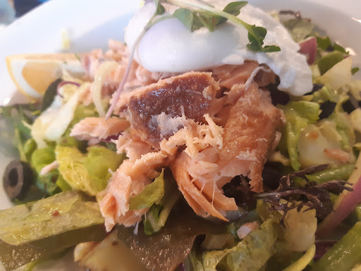 Read moreBraving the storm, I decided to take my parents out for lunch as they were on holiday with us and the rubbish weather reduced our options for entertainment. We were looking for something to warm us up, something tasty and somewhere interesting, and all being seafood fans, we decided on The Anchor. While the venue was busy, we were quickly seated and immediately asked if we wanted coffee - Great start! The coffee came and was nice, and got our gears moving ready to order our lunch! I ordered the Salmon Nicoise Salad, as I had been feeling a little chubby with all of the eating and sharing I've have been doing! The salmon was served cold, a smoked fillet, whiskey cured, sitting on a bed of fresh salad with potatoes and a poached egg. I really enjoyed this dish, and was surprised at the freshness and quantity of the salad given the season and current cost of lettuce! My wife had the chowder, as she often does, and this was well received and warmed her up on this cold, wet day. My mother had the prawn risotto, and while it wasn't something she would normally order, she enjoyed it. Dad ordered the duck parfait, and this was very tasty although he was eyeing up mum's risotto and helped her finish it! The restaurant is a great place to visit, you can sit and watch the boats come and go. I have often visited on a nice sunny day and sat with a cold beer and watched the boats. A very relaxing undertaking! This day was very wet, but the restaurant was warm and dry, a great way to spend...
