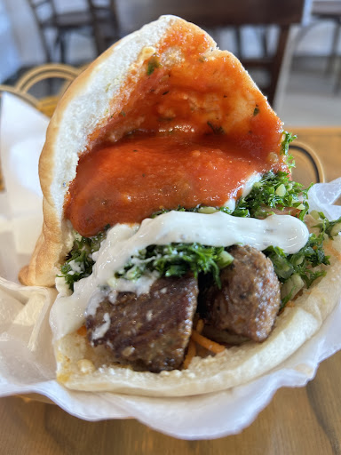 Read moreThe best middle eastern food! Bold spices yet well balanced flavors, temperature, and texture! Every single item on the plate is a star; grilled pepper, marinated carrots, the sauces etc!!! I'd say it's a Michelin star worthy restaurant. The boss man is really friendly holding the shop by himself yet he spent time decorating a $3.50 cake, can feel his passion about food. Must try if you pass...