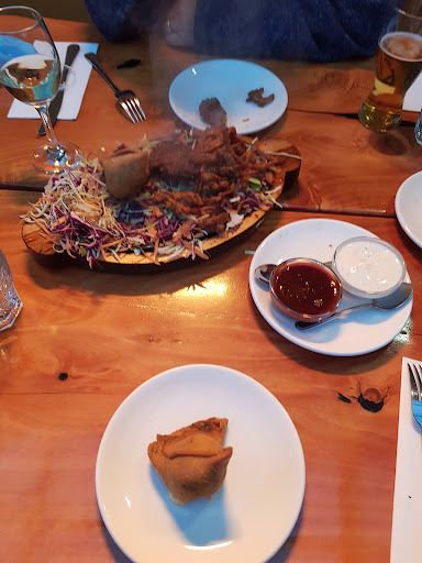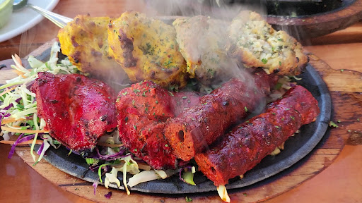 The food was outstanding. The paneer tikkas and sizzling mushrooms came on a sizzling platter. Both were very tasty and the bhajias crispy and generous.