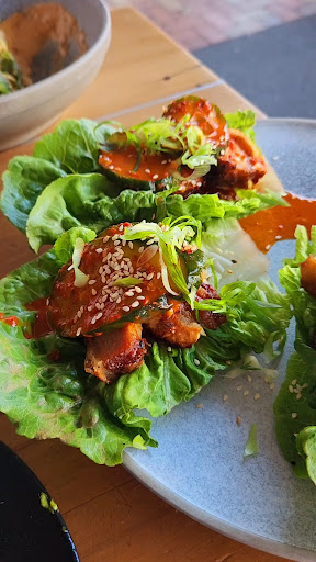 Read moreWe were early diners and could see the place was going to be busy but we were basically ignored on entry and had to ask if they were open. Once we got settled at the bar overlooking the street (there were dirty dishes and crumbs etc to be cleared) we ordered oysters and scallops crudo and some Pinot noir. Fresh oysters with mignonette dressing delicious though very salty in brine. Scallops were delicious too and also very fresh. We had also ordered hand cut chips which came out hot and slathered with mayo and bonito flakes as well as another sauce. Weâd been assured this was all going to be gluten free but the gut doesnât lie and something definitely wasnât gluten free in that dish! We tried to get the attention of the waitress to order more but she was having a sit down with someone (seemed like the manager) and we truly couldnât grab anyoneâs attention. Eventually ordered crispy pork with Cucumber Kimchi on cos lettuce and a glass of champagne. Champagne was as expected. Crispy pork was quite bland and not seasoned even though the kimchi was enjoyable. I didnât take a photo but it wasnât inspiring or interesting in flavour. Overall a very disappointing early meal. It was buzzing when we left and obviously a popular spot. We must have seemed we were not going to spend much they thought. A mother and daughter dinner. Not...