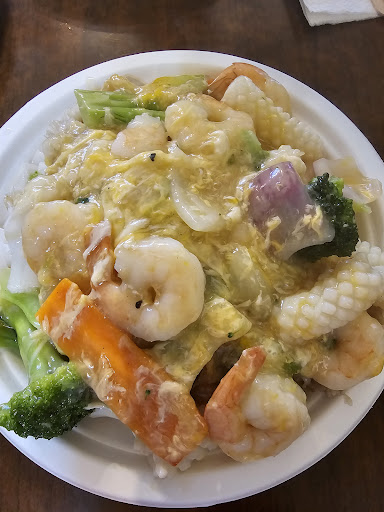 Sweet and Sour pork was terrible and we basically got a large serving size spoonful of crispy hard bits of pork something on one side of container with the other filled with rice.