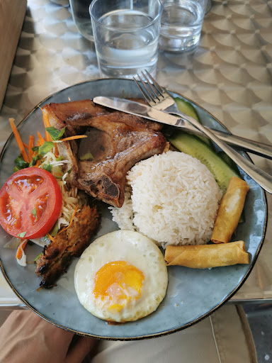 First time visiting. Got there right on open. My lunch was freshly made to order. Took only 15 minutes approximately. I had 2 items that were the best sellers. I had Pork Belly with crackling Banh Mi Sandwhich and the Rainbow Fresh Spring Rolls. The spring rolls were fresh and light, perfect summer lunch. Came with a yummy dipping dressing. The pork bun was also tasty- the sauce was sweet but it didn't make me feel ill by the end which was a win! The only gripe probably is being really picky, the pork crackling had parts which were really hard to eat (too hard or chewy) but to be honest that would be hard to maintain perfection. I was a bit guttered to find my classic one I use to have in Australia wasn't on the menu but determined to find something very close. Will definitely be back as there are lots of yummy looking food on the menu. I also had good service. The lady helped me pick when I was unsure recommending both dishes....