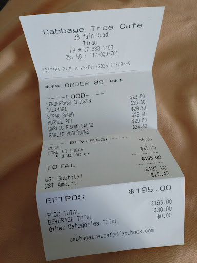 I had drivenn up from Palmerston North heading to Auckland and thought the Cabbage Tree Cafe would be a good choice. to take a coffee break I ordered a 1 shot cappacino with Almond milk and cinnamon and a custard slice. I specifically asked to have the cappacino in a Medium Takeaway even tho I would be eating in the Cafe. The cappacino arrives in a cup. I took it back to the lovely young staff and said I specifically asked for this to be in a takeaway cup. Why, because I am slow at drinking and eating. The coffe gets cold in the cup plus, for hygene reasons, I like takeaway cups it keeps the coffee hotter for longer She took it back to the barrister. When it came back, I had 1/2 a cup of cappacino, 1/2 of that he had just re frothed some milk and the coffee was disgustingly bitter. It was like an expresso. So the coffee filled 1/4 of the cup with the remainder 1/4 frothed milk. I began to bite into the custard slice. OMG! This was not even custard. It tasted like it has been in the chillers for days. I couldn't eat it so after paying $12 I walked out. Its a long drive from Palmerston and this was supposed to give me the energy and wake-up to drive direct to Auckland. The 'I thought' good old NZ Custard slice was supposed to give me the sugar hit to keep me awake, instead it was like fake paste. Sorry Cabbage tree. But it is what it is and I was so miffed and disappointed. Tirau is a lovely town but you let it down that day. Thurs 25 August...