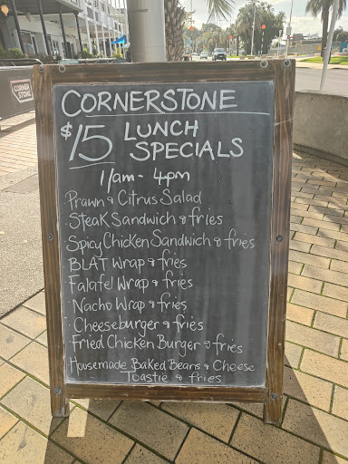 Read moreTried to eat there but couldn't as no one would take our order. After waiting at the gate for a couple of minutes, we went and got our own table in the waitress' eye sight so she would see us. 15mins later she still hadnt stopped talking to the one other table of people in entire place. Politely said hello a couple of times to her, and we waved our arms frantically to get her attention, but she would just look at us and keep talking to her friends. So we got up and left, then she acted shocked that we were leaving? Very weird. No wonder all the other open restaurants were full and corner stone only had one table of people as this particular waitress obviously refuses to serve people she...