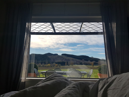 We stayed in one of their 2 bedroom River Lodges - absolutely beautiful! One of the bedrooms (and its bathtub in the ensuite) had a view of Te Mata peak, the other of the river. Both bedrooms had ensuites, large walk in wardrobes, tvs and super comfortable beds with a range of pillows to choose from. The Lodge is complete with a full kitchen, washing machine and dryer. The lodge had both an outdoor and indoor fireplace, which was perfect for enjoying a bottle (or more) of one of their wines with.