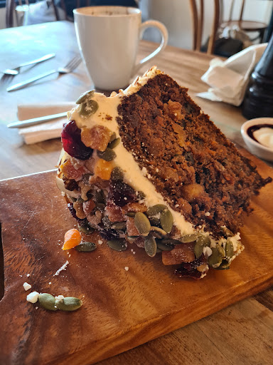 Read moreVery nice..caters for GF , Raw , and regular tastes. The food choices are unpretentious , fresh very fresh...good honest food and voluptuous in presentation appearance and most importantly,,,taste. Simple friendly service...nice. Coffee? ..so nice to come home to NZ and drink real coffee . In New Zealand your shots are doubles unless other wise requested no namby pamby single shots. Im going to go out on a limb and say " while its not impossible, it is extremely unnusual to find bad coffee in NZ". Its something any good NZcafe of prides themselves on . I had the Benedict on hash and bagel devine . Took away extremely ample slice of moist cream cheese apricot and pumpkin seed topped carrot cake and Lolly cake... We're comming back. Its not cheap nor terribly expensive. The Haloumi salad wraps are worth trying as...