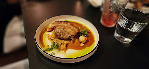 Went in on a Tuesday night, dressed up with 2 pals in a flamboyant way for a fun evening dinner. We didn't have a booking and were greeted by a sweet server; however a guy, who I think was the owner or duty manager or something, shooed her away and took over, giving us some weird, hostile vibes while he very thoroughly ID'ed us (we are all in our 20s) and made some weird comments. It felt like he didn't want to serve us and was looking for an excuse to turn us away, but our IDs checked out so he reluctantly seated us. Server staff were very helpful but didn't bring water till after our first alcoholic drink when we specifically asked for it. One of the server staff I felt so bad for, she seemed pretty green, couldn't remember things about the menu and got stressed about it (I don't hold it against her though, she was clearly trying). Bathroom was messy and no toilet paper in my stall. Food was really good though, had the WOAP burger which was a super unique experience and drinks were yummy and really well priced. Also worth noting they had dry aged meet hanging in cabinets as decor which made my vegetarian friends feel gross and the single vegetarian main was sold out so they had an alternative that wasn't on the menu.