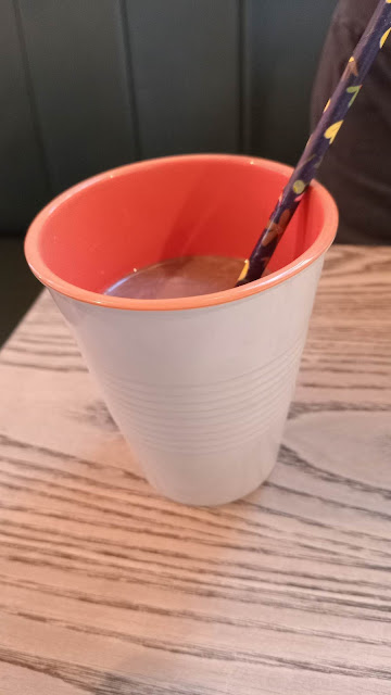 When we first arrived, all seemed well. Great outdoor courtyard, plenty of space, good bustling atmosphere, heat lamps on. We were given the choice of tables (always appreciated) and seated, with water bought immediately (none offered for the dog though). Hopeful start.
