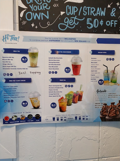 First time trying Hi Tea and it was lovely. I got the Peach Lemongrass tea with jelly, even had slices of peach and lemon grass floating around! Very delicious and fresh. The jelly is also vegan so no animal based gelatin, which was a nice surprise. At first I thought they didn’t give me much jelly, so that was a little disappointing, but turns out it’s just completely clear and by the time I had almost completely finished the tea I realised there was loads it was just up the top with the ice, whoops! The woman who served me what the sweetest, and even got me to try my drink before I left incase it wasn’t to my taste and she would fix it. You can definitely taste the freshness of this tea place, compared to the other standard tea places around Wellington. Highly recommend. Excited to try their milk teas next time. I don’t usually leave reviews (this is my first one ever) but I was very impressed...