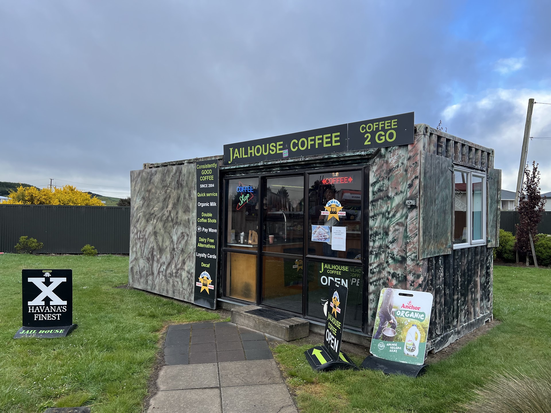 Takeout Coffee Kiosk. A must stop when passing through Waiouru. Good Havana Coffee and a few chocolate bars and biscuits for sale as well as made on premises Chocolate Coated Marshmallow Balls and Apricot & Coconut Fudge. Havana cups must be the coolest takeout cups around, they are 'Innocent Packaging' made and recyclable/compostable. Jailhouse also sells "Keep Cups" to use over and over. Set up now in a converted shipping container (used to be in a small truck parked in same place). A real home built Kiwi enterprise! It is on the grass area behind the Public Bathrooms (open 24/7), access on the Caltex Truck Stop on corner of Rangipo Street. Ignore Google Streetview which shows a photo from 2008, the Caltex Service Station is long gone, easy parking in...