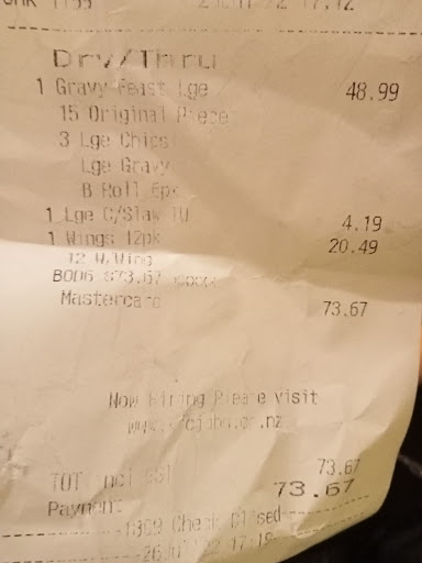 First of all, it's worth pointing out that this is a very busy location. In the drive through section you had cars lined up waiting to come in to the run off area on the KFC location. So they were literally outside of the doors of the premises. Inside it was slightly less busy. They have a couple of machines to help do your order via the automatic teller. So far so good. Unfortunately to use the machines you need to register a number. Now what no one tells you is that you need to go and get these tokens at the counter in order to get a number so that you can make your order at the machine. So we stood there for 5 minutes trying to work out how to use the system before giving up. We then saw two other people also trying to work it out before they also just lined up to wait. It was only when someone who was a regular customer went up to the counter whilst we were waiting to be served and took a token that we realised how the system worked. When we eventually got served, the poor lady who served us was new, and was clearly stressed. On picking up our order, we discovers that we had the wrong order, when we pointed that out to the staff member he went away, and we assumed he was going to rectify ths mistake. It was when he didn't reappear after a couple of minutes that we came to the conclusion that he wasn't coming back to address our problem. When we got his attention, we pointed out that not only was the order wrong but that two of the items were missing, he returned with one of the missing items, and insisted that the rest of the order was correct. Because how busy it was and how clearly stressed out the staff were we let it go. But it's probably the worst service we've had at a KFC. And then when we got back to our accommodation we found that our motel fob had been stolen (possibly pickpocketed whilst we were at the KFC), and the fries were awful. The fries were cold, and a mixture of old fries which had clearly been in the tray for a while and some newer ones. Usually I don't comment on things like this, and I feel for the staff, but the whole experience was so awful that I think something needs to be done at that...