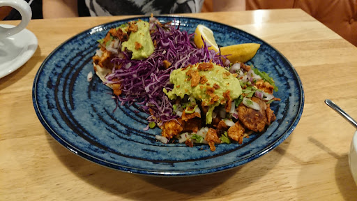 The enchilada did not give the appearance of being put together recently but was edible. I can recommend their shrubs but they could tone down on the vinegar. The best part though was the Basil Fawlty impersonation given by the owner/manager. I was overcharged for what I had and got a refund but not without a show reminiscent of the restaurant at Fawlty Towers. There was a Manuel on the till who had some difficulty sorting things out. Along came Basil to the rescue with 21st century abuse even to the extent of following me out of the café to swear at me. Never mind, but somebody else who was in their 70s and less resilient than I might have been a bit shaken. A 5 star show as was the original.