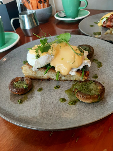 Great atmosphere and marvellous hot and cold food, with wonderful staff. This is a cafe not a restaurant yet if it were to introduce table service it would make an awesome restaurant with a great menu. Although I never went out there, they also have an outdoor dining patio at the rear. We took friends there for lunch and we were all very, very impressed... great value. (Noticed a dog inside therefore must be...